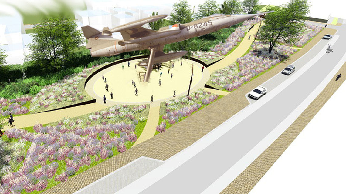 De gemeente Soest heeft met de omwonende van het toekomstig park een voorlopig ontwerp gemaakt. Een aantrekkelijk park met in het midden, als het aan de Gemeente Soest ligt, een replica/model van een vliegtuig dat ooit op vliegbasis Soesterberg vloog. De gedachten gaan vooralsnog uit naar een Spitfire, maar het zou evengoed een F15 Eagle kunnen zijn.